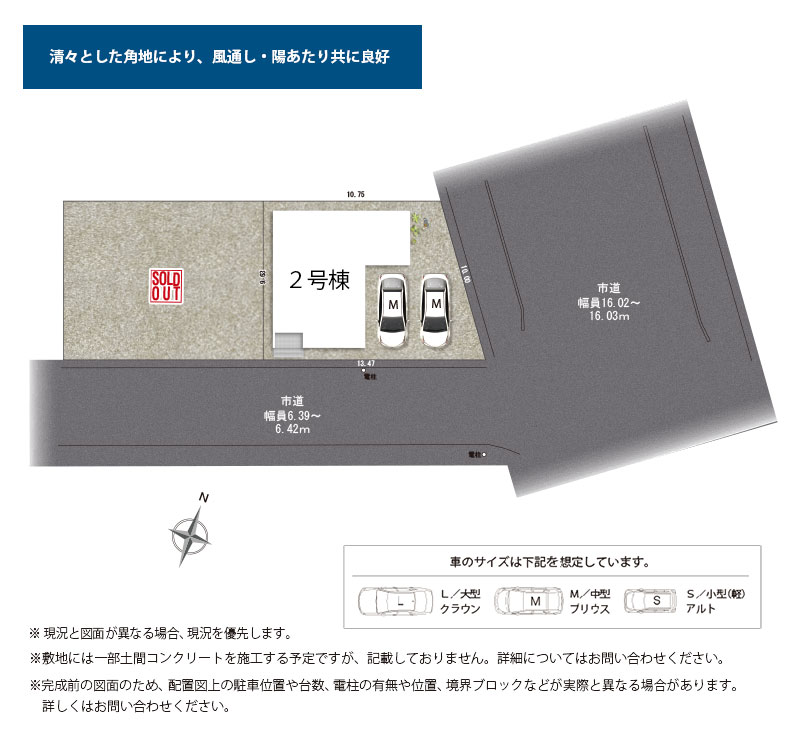 清々とした南東角地により、風通し・陽あたり共に良好。
