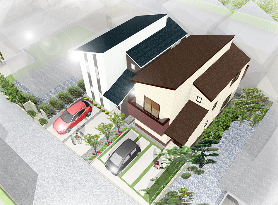 ※外構はイメージです。外壁の材質や色、内装及び設備の仕様等については予告なく変更する場合がございます。