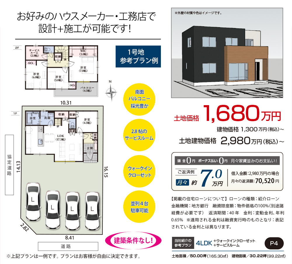 1号地:1,680万円 2号地:ご成約済み 3号地:ご成約済み |