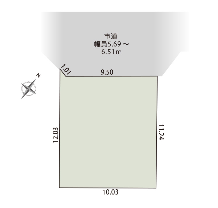 | 接道状況 | 北西側5.69~6.51mの市道に接する |