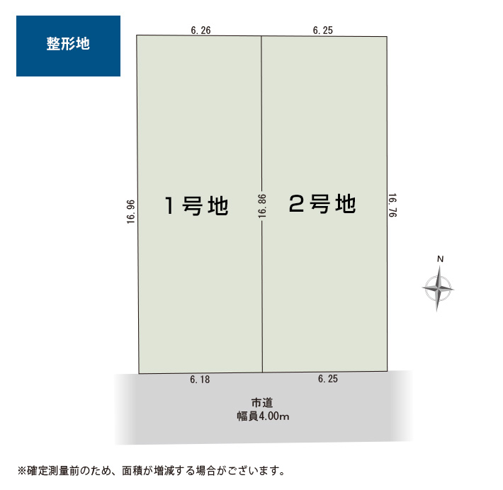 1号地:面積/105.24㎡(31.83坪) 2号地:面積/105.23㎡(31.83坪) |