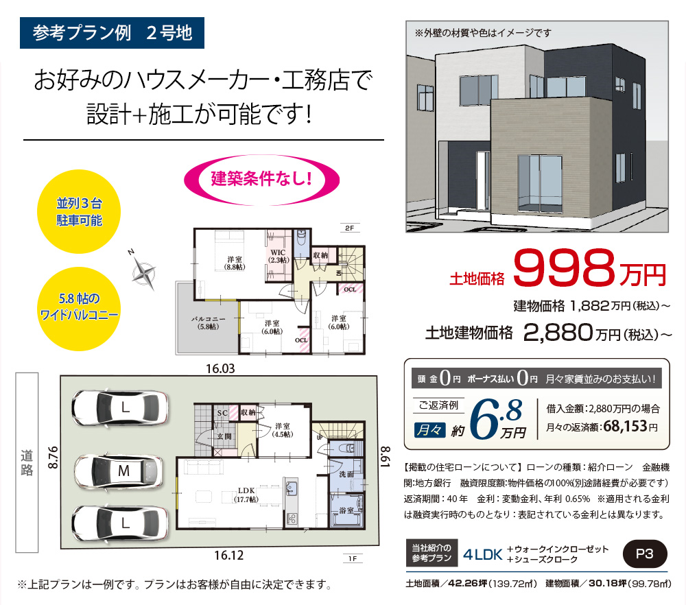 1号地:998万円 2号地:998万円 |