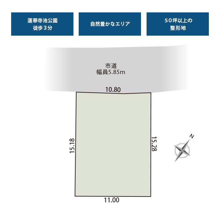 | 接道状況 | 北西側5.85mの市道に接する |