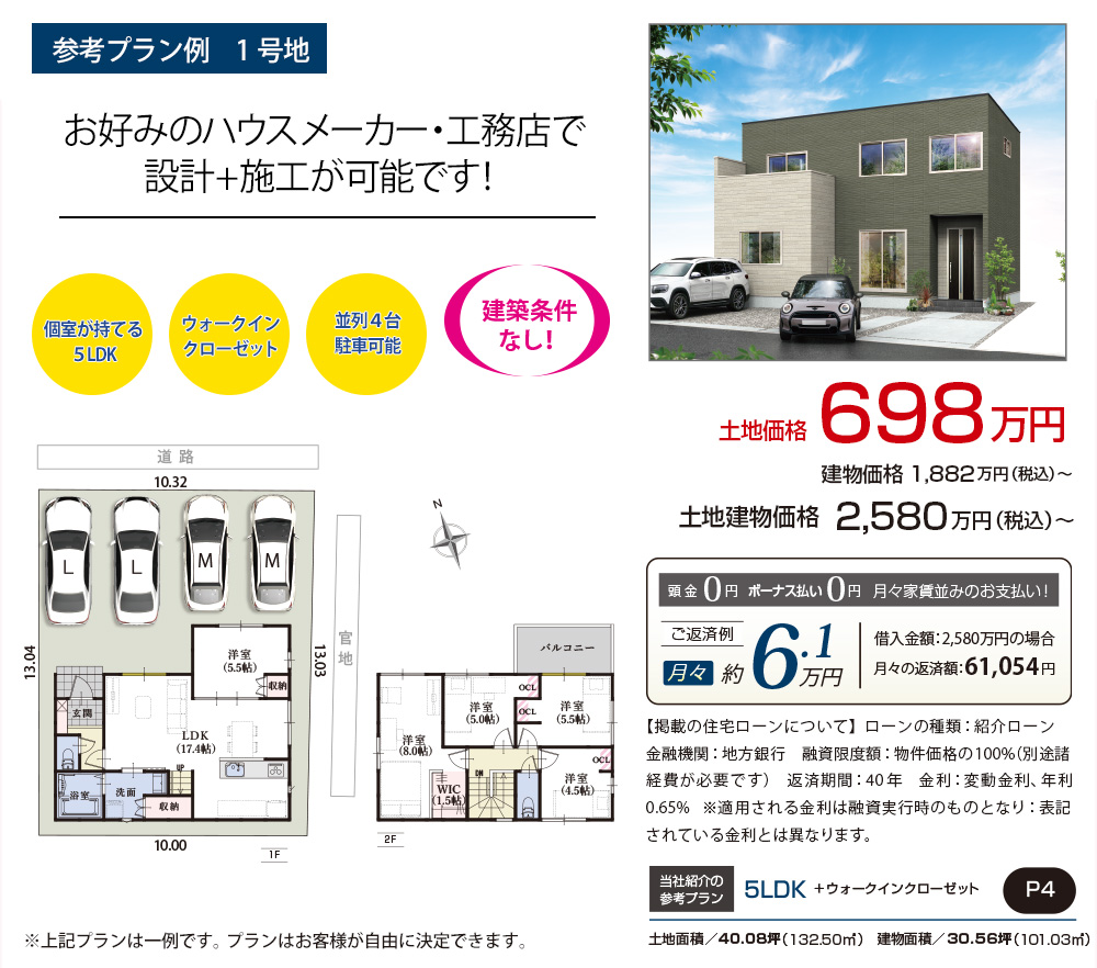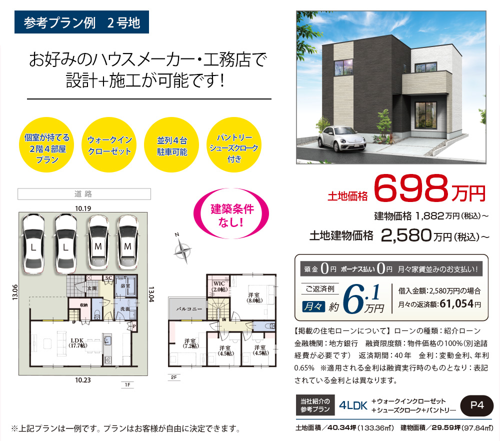1号地:面積/132.50㎡(40.08坪) 2号地:面積/133.36㎡(40.34坪) |