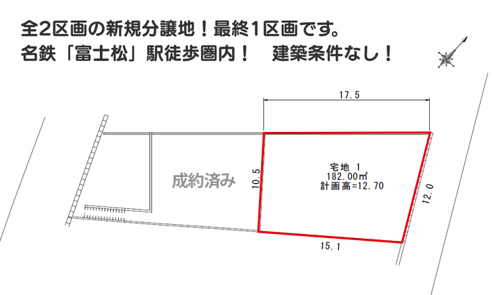1号地: 3,280万円 2号地: 成約済み |