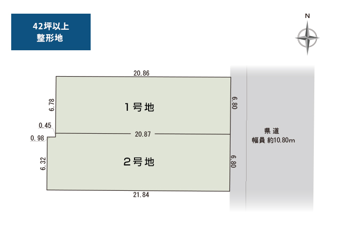 1号地:面積/141.72㎡(42.87坪) 2号地:面積/147.94㎡(44.75坪) |