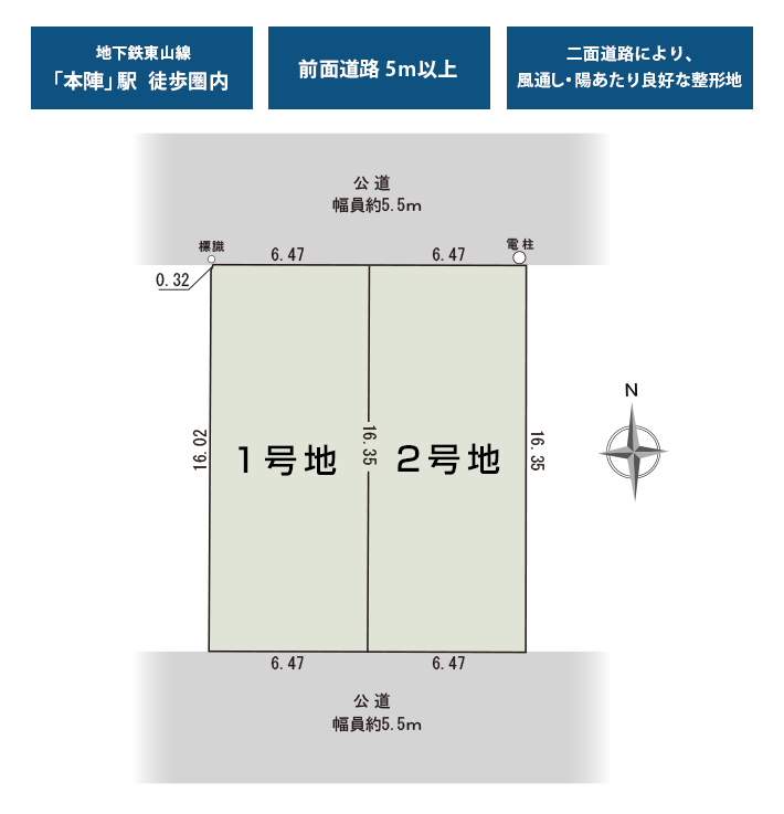 | 接道状況 | 南側約5.50mと北側約5.50mの公道に接する |