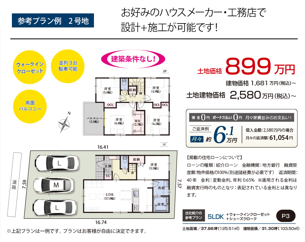 1号地:126.86㎡(38.37坪) 2号地:125.51㎡(37.96坪) |