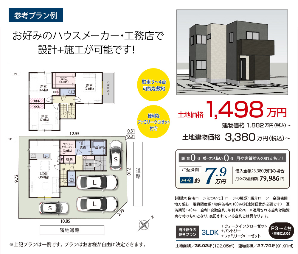 | 備考 | ●建築条件なし ※(3~6号地)別途セットバック部分38.13㎡の1/4分持ち分あり ※5号地:転回路19.12㎡(5.78坪)持ち分あり |